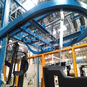 烘干線干燥的濕物料由皮帶輸送機或斗式提升機送到料斗,然后經料斗的加料機通過加料管道進入加料端。加料管道的斜度要大于物料的自然傾角,以便物料順利流入干燥器內。干燥器圓筒是一個與水平線略成傾斜的旋轉圓筒。物料從較高一端加入,載熱體由低端進入,與物料成逆流接觸,也有載熱體和物料一起并流進入筒體的。