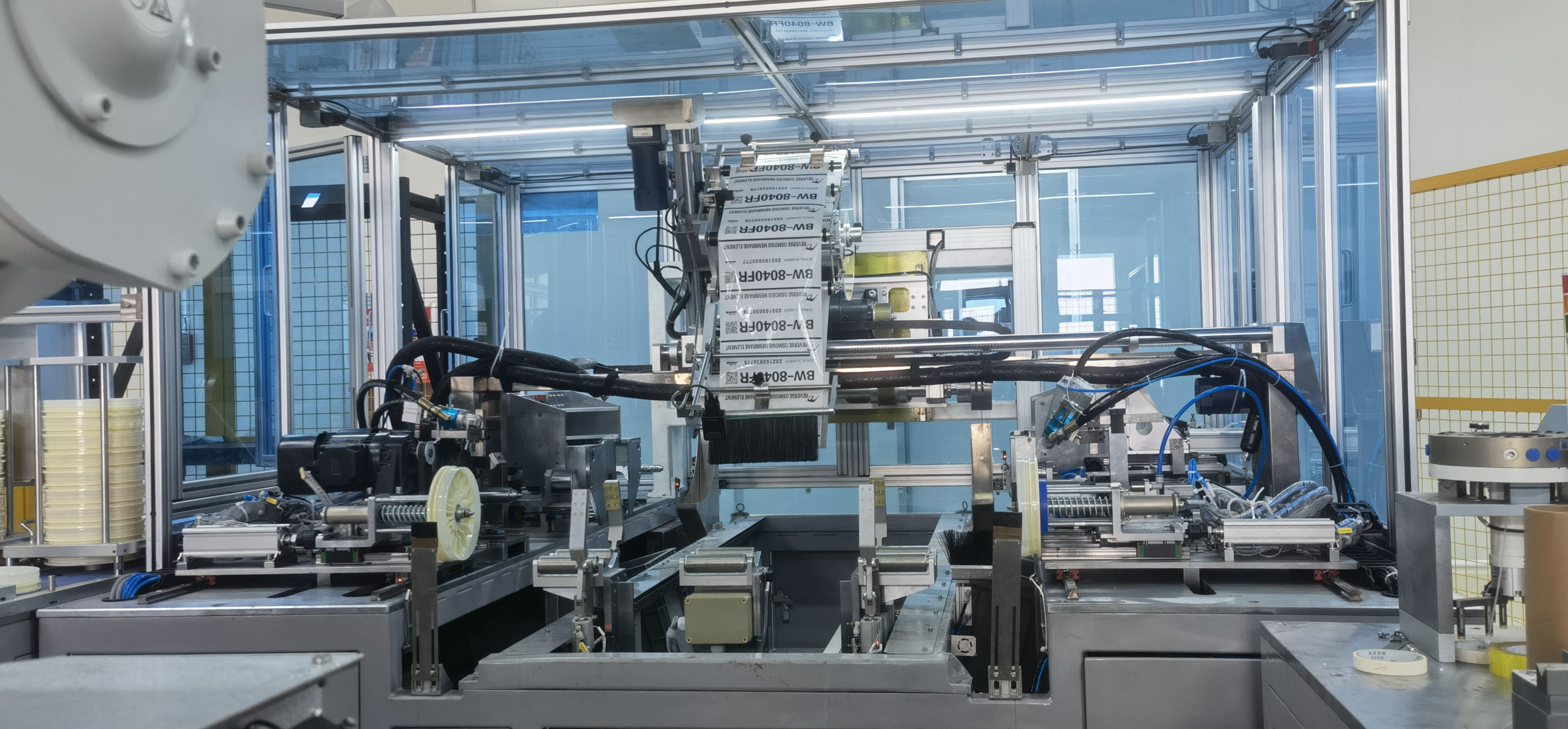 滾筒法滲透膜烘干設(shè)備是專門針對(duì)薄膜行業(yè)烘干專用的型號(hào)設(shè)備。生產(chǎn)原理是當(dāng)用高位槽中料液自流進(jìn)入獨(dú)創(chuàng)的溶液簾式涂布裝置,使溶液均勻的施涂網(wǎng)棉表面,網(wǎng)棉經(jīng)過一周的轉(zhuǎn)動(dòng)附著到滾筒載體之上,再放入60-80℃的隧道爐之中干燥成膜,達(dá)到定型。在導(dǎo)輥的牽引下膜被剝離滾筒,進(jìn)入下一步生產(chǎn)工序。